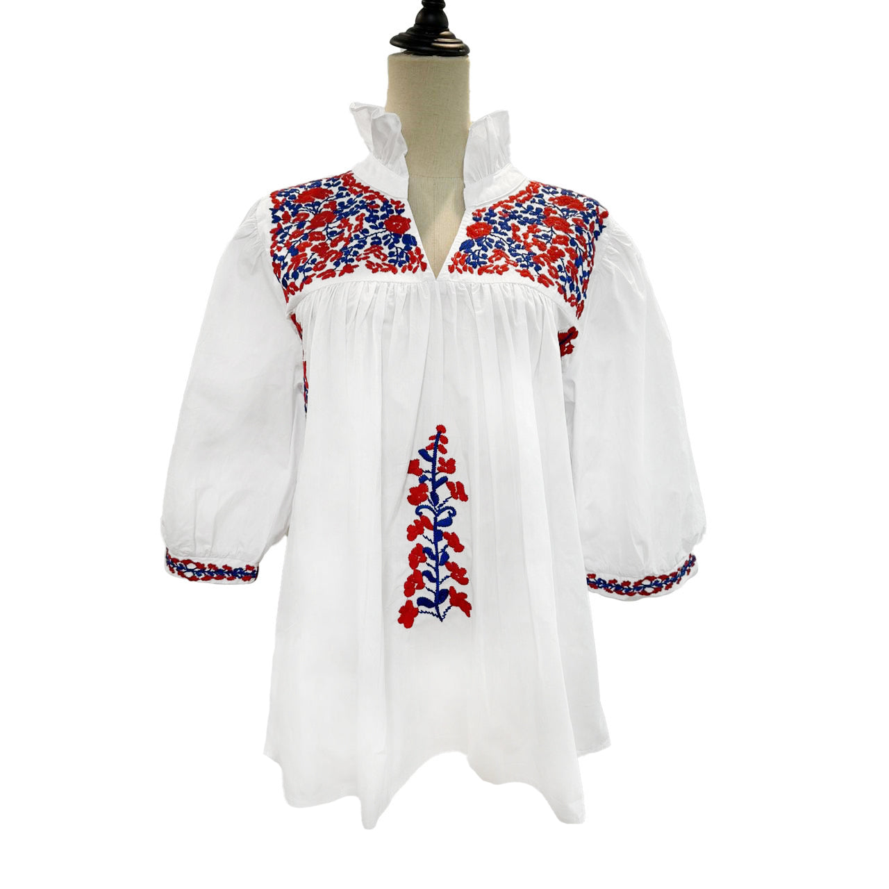 We like to call our style Modern Folk — a celebration of sewing traditions, heritage textiles, and the art of dressing with meaning. At Spirit Dress, we draw inspiration from around the globe, honoring bold floral embroidery traditions from Central America to Eastern Europe. Think of it as a modern twist on the smocking of the Deep South (once reserved for children) and the delicate ruffles of French peasant dress. Our pieces nod to the classic bishop silhouette, reimagined through a distinctly Southern lens — where dressing up is both a ritual and a joy.