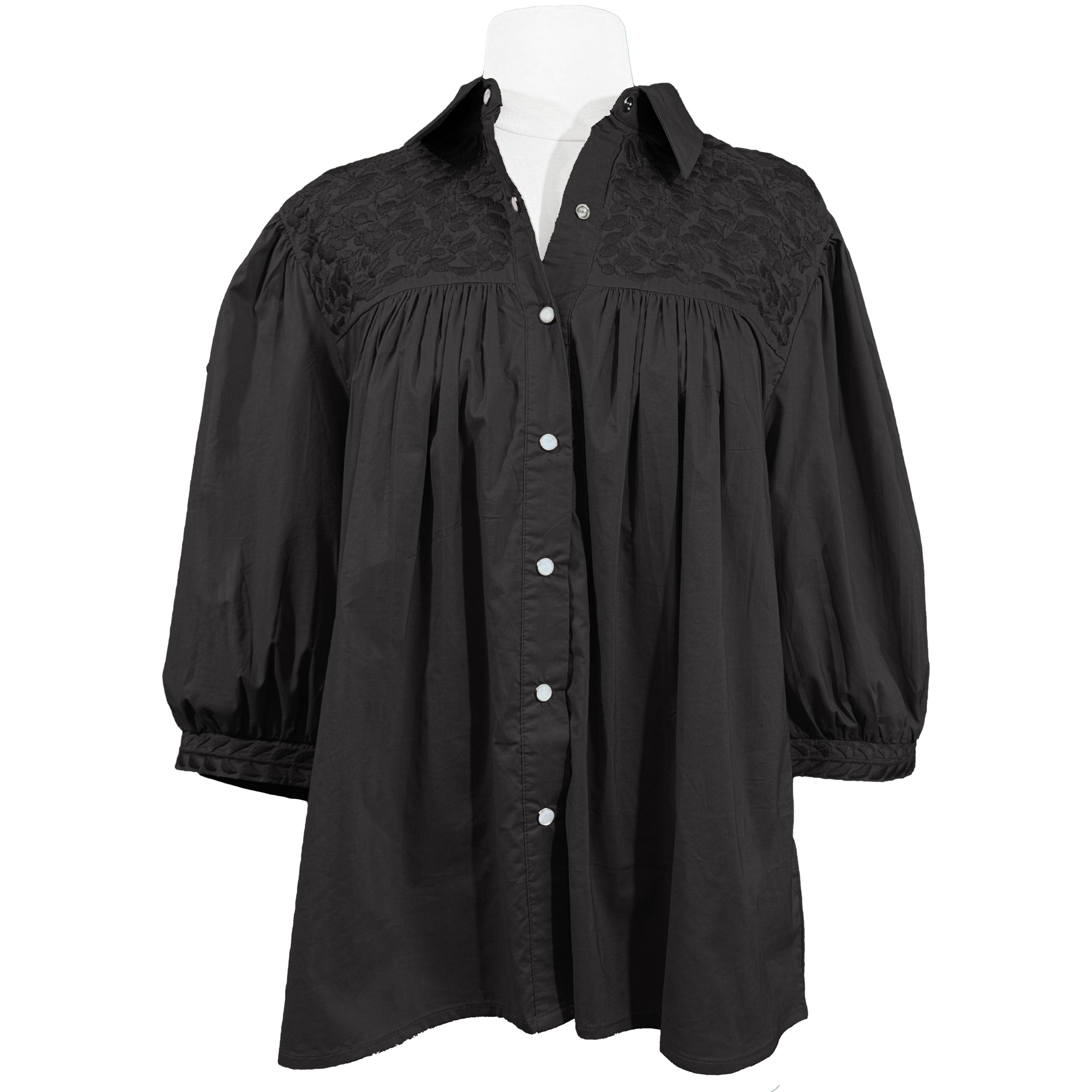 Beautiful, elegant blouse. I really love this blouse; it is elegant and beautiful. It can be worn with jeans or with dress pants!