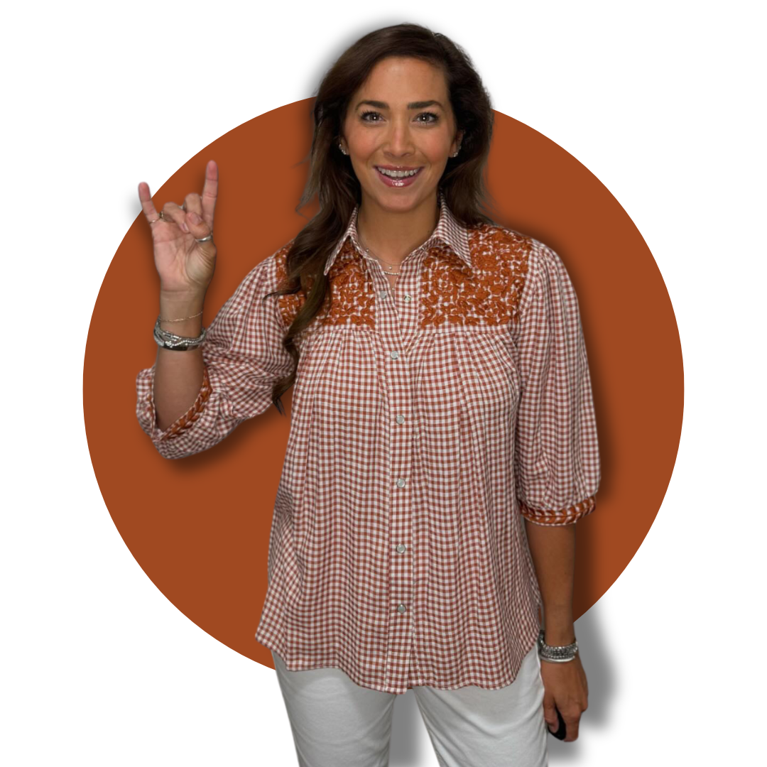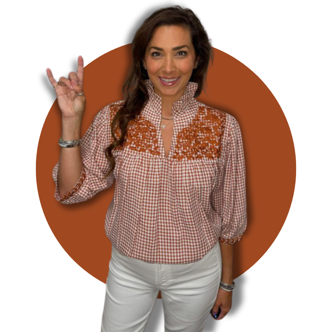 Stay cool on the sidelines and at the tailgate in our lightweight linen blouses for UT, A&M, TCU, Tech, Baylor, SMU, LSU, Georgia and more...