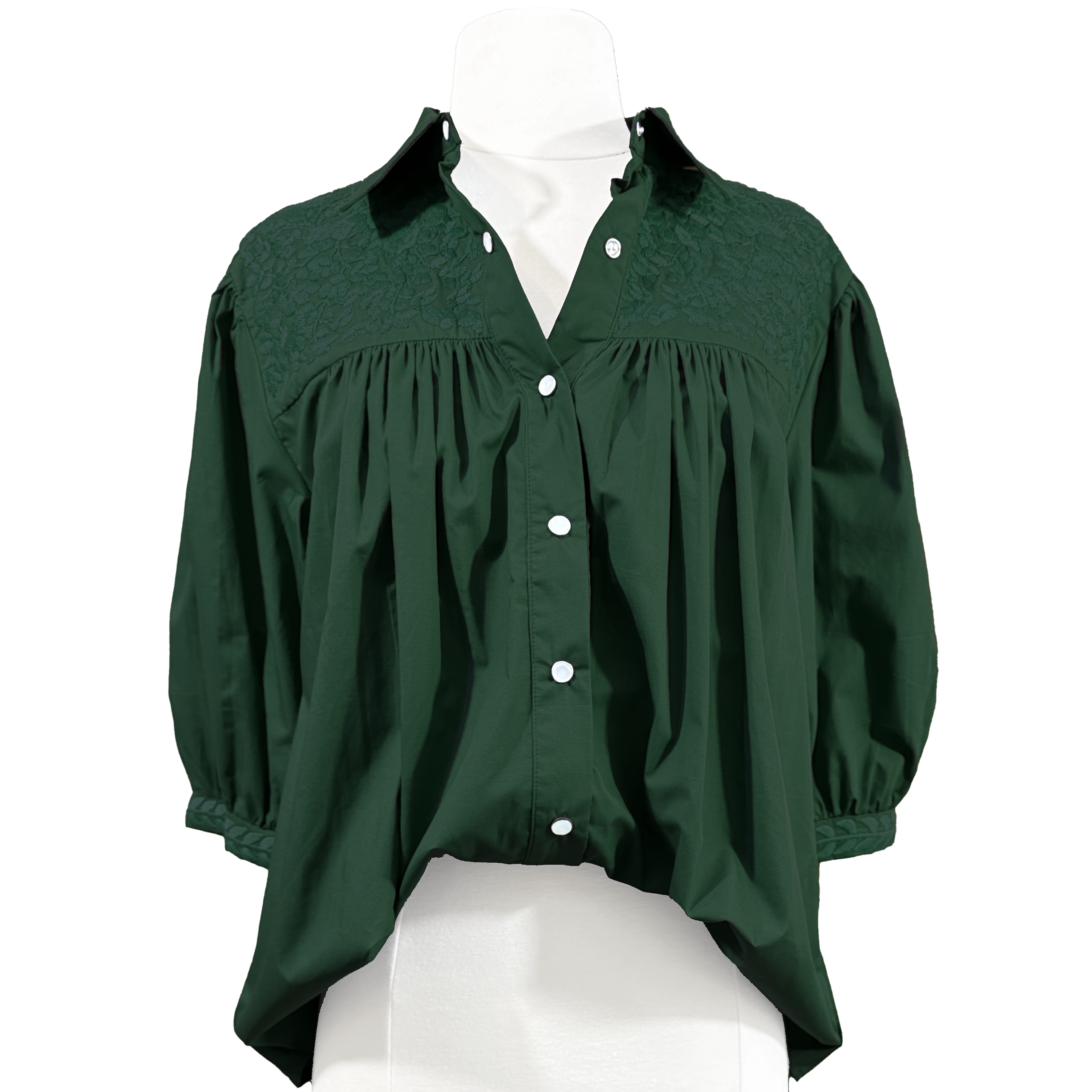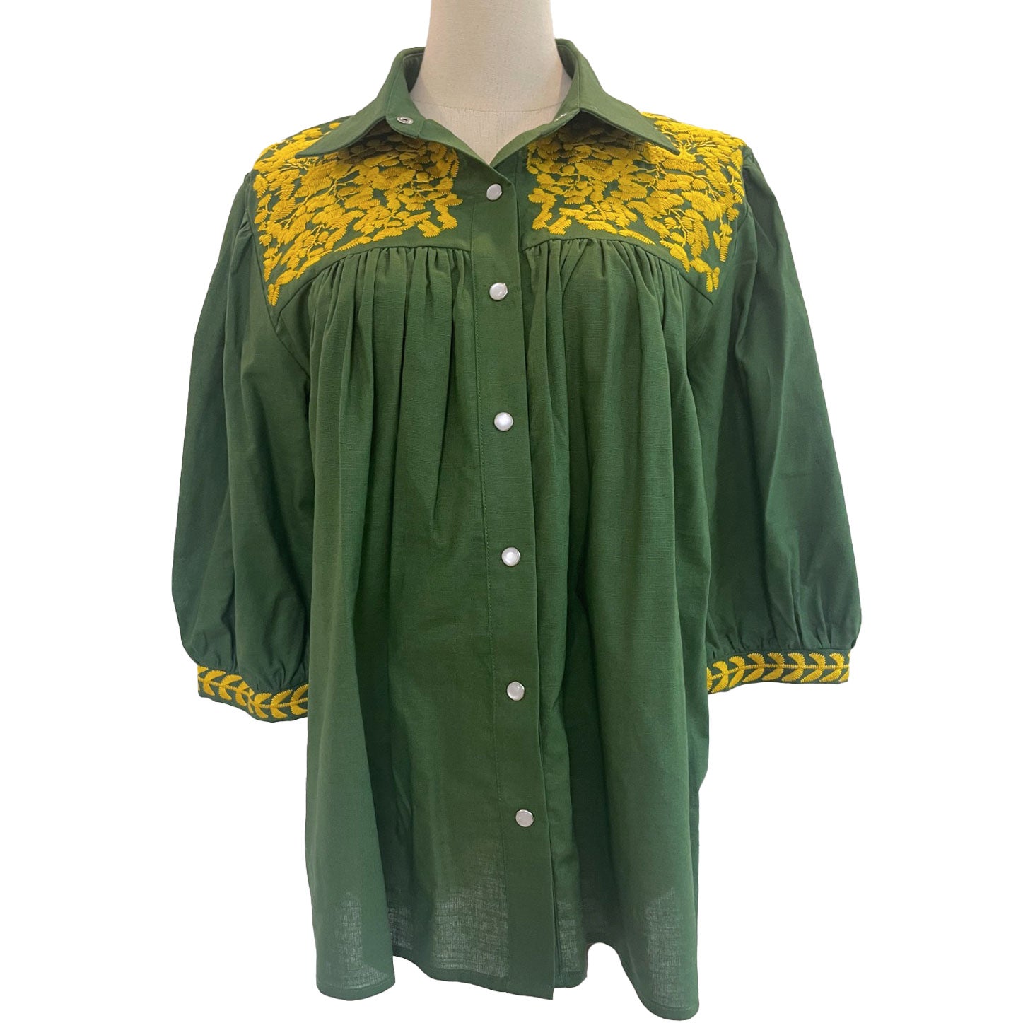 We like to call our style Modern Folk — a celebration of sewing traditions, heritage textiles, and the art of dressing with meaning. At Spirit Dress, we draw inspiration from around the globe, honoring bold floral embroidery traditions from Central America to Eastern Europe. Think of it as a modern twist on the smocking of the Deep South (once reserved for children) and the delicate ruffles of French peasant dress. Our pieces nod to the classic bishop silhouette, reimagined through a distinctly Southern lens — where dressing up is both a ritual and a joy.