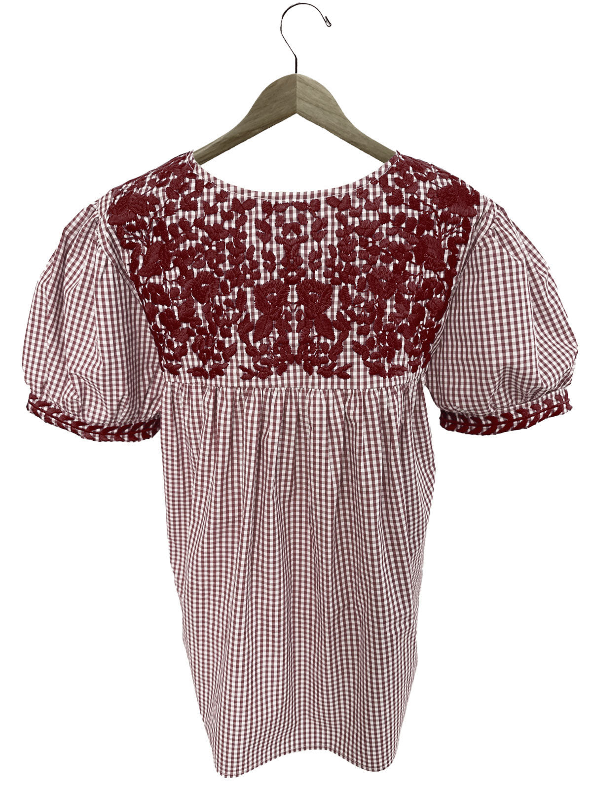 Burnt Orange Gingham Hummingbird Blouse (XL only)