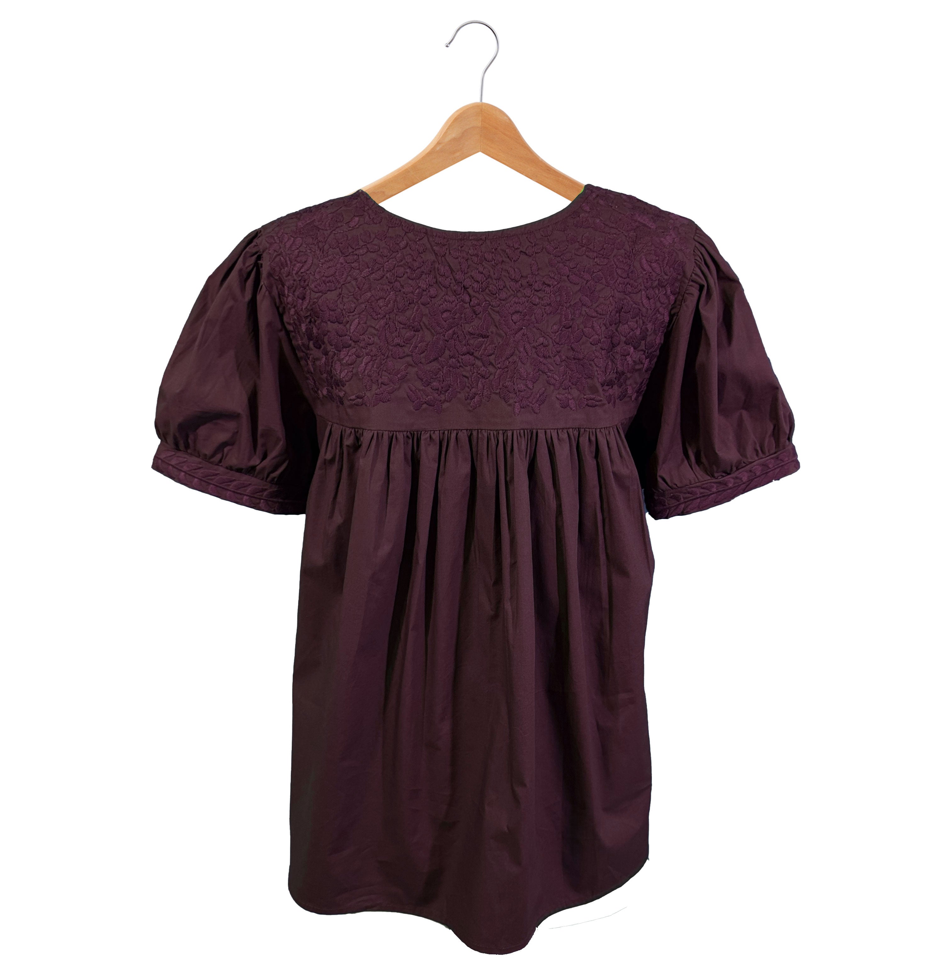Faded Denim + Maroon Hummingbird Blouse (XL only)