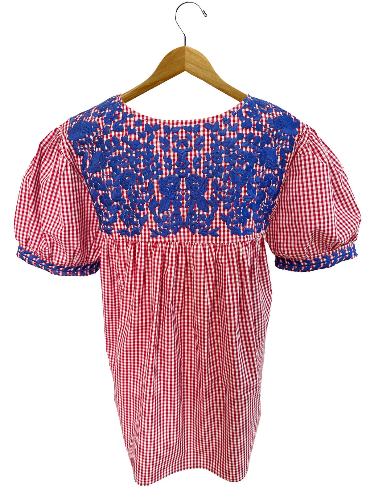 Red Gingham + Blue Halftime Dress with Pockets (XS only)