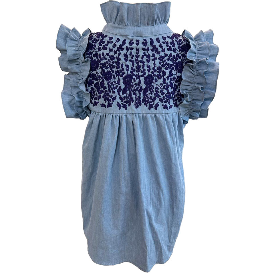 Faded Denim Harvest Sunflowers Tailgater Dress