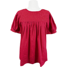 Step into holiday cheer with our 2025 Cranberry Red Holiday Halftime Blouse! This bright cranberry red shines with matching embroidery. In our beloved Halftime cut, it features a crew collar. Perfect for bringing an elegant twist to your holiday wardrobe, this blouse is ready to ship pre-Thanksgiving—grab yours now and sleigh the season in style!