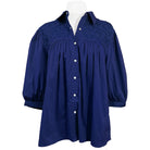 Giddyup, cowgirl. This royal blue blouse with royal blue embroidery takes everything you love about the Spirit Dress tailgater blouse and adds PEARL SNAPS. You'll get the same great lose fit that you've come to expect from Spirit Dress with the versatility of a button-up. Instead of the high ruffle collar, I opted for a traditional collar that can be worn up or down. It's got just enough stiffness to hold its shape whatever you choose. Saddle up and get yours today before they sell out!