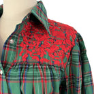 Step into holiday cheer with our 2025 Green Holiday Tartan Cowgirl Blouse! This cheery green tartan shines with festive red embroidery and classic pearl snaps. Designed in our favorite Cowgirl cut, it features an adjustable collar you can rock up or down. Perfect for bringing a playful twist to your holiday wardrobe, this blouse is ready to ship pre-Thanksgiving—grab yours now and sleigh the season in style!