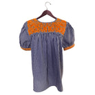 Navy Gingham + Orange Halftime Blouse (XS, 2X, 3X only)