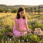Say hello to spring with this charming pink dress for little girls featuring matching pink cross embroidery and a modest crew collar. The cute angel sleeves add a touch of fun to any day, making it the perfect choice for Easter or any Sunday outing. (Note: It also looks cute on Mondays, Tuesdays, Wednesdays... you get the idea.)