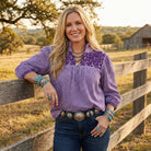 This might actually be the most perfect blouse for tailgating ever made! Introducing THE TAILGATER with gorgeous embroidery front and back (and on the cuffs!), an oversized ruffled collar stands tall for maximum drama, puffy sleeves that provide breathability, and a deep (but not too deep) V-neck that ensures plenty of ventilation. Plus, the tunic cut is fully flexible—you can tuck it in, leave it semi-tucked, or go full-on untucked. You've never been so comfortable sitting on the back of a tailgate. Trust me on this one.