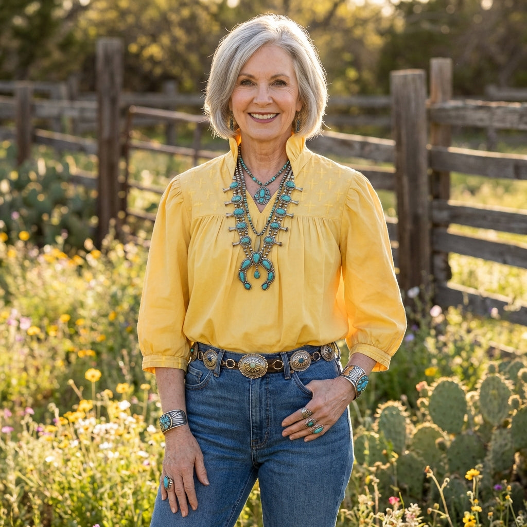 Say hello to spring with this charming yellow blouse featuring matching yellow cross embroidery and a playful ruffled collar. The cute 3/4 puff cap sleeves add a touch of fun to any day, making it the perfect choice for Easter or any Sunday outing. (Note: It also looks cute on Mondays, Tuesdays, Wednesdays... you get the idea.)