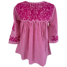 Celebrate love in style with our Valentine Gingham Saturday Blouse—a charming piece that combines bold raspberry gingham with delicate embroidery for effortless charm. The modest crew collar and comfortable 3/4 sleeves create a flattering, versatile silhouette perfect for date night or casual outings. True-to-size fit ensures you'll feel confident and comfortable all day long.
