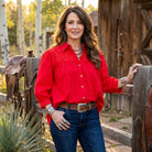 Saddle up for fun in this stunning cherry read blouse that's got all the Spirit Dress charm you crave—plus a major upgrade. Pearl snaps replace traditional buttons for that authentic cowgirl edge, while the relaxed fit keeps you comfortable all day long. The crisp traditional collar plays it cool with just enough structure to stay put whether you wear it buttoned up or casually open. It's the perfect blend of classic Western style and modern versatility.